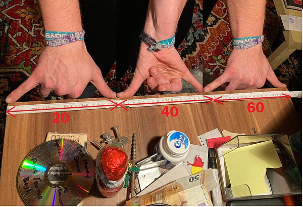 kenneng sie das problehm: man muss 1 schreibtischkante ausmessen und hangs k1 gliedermassstab zur hamd?