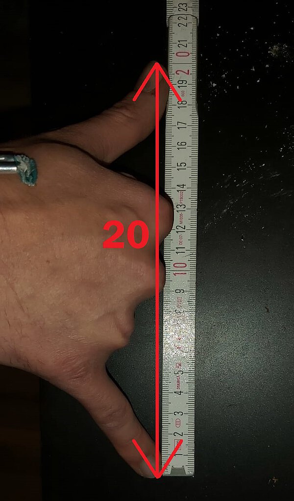messen sie irgendwas, evtl wie hier 1 schreibtischkante mittel der kalibrierten hand wie folgt: